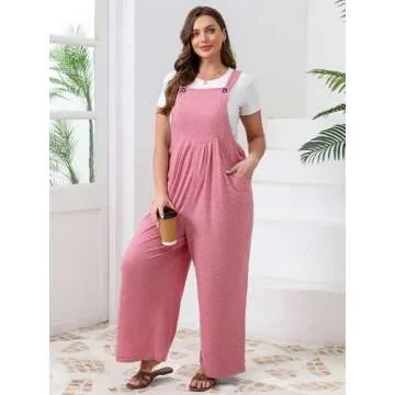 TAKEYAL Plus Size Overalls For Women - Stylish Wide Leg Jumpsuit with Pockets in Pink (4XL)