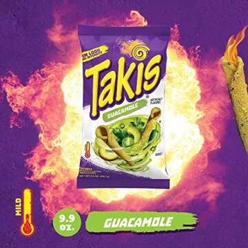 Takis Guacamole Rolled Tortilla Chips, Guacamole Artificially Flavored, 9.9 Ounce Bag