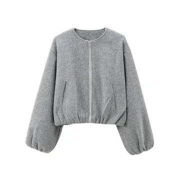 Talakeno Women's Trendy Cropped Bomber Jacket - Versatile Zip Up Coat with Pockets (Gray, XS)