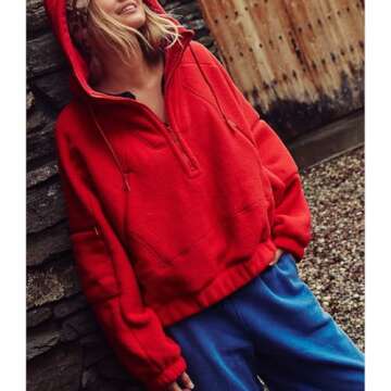 Talakeno Womens Fleece Lined Sweatshirts Half Zip Hoodies Pullover Tops Plush Outerwear with Zipper Kangroo Pockets(Red,XL)