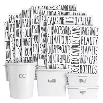 Show more Transform your home into a model of organization with the All Caps Household Storage Labels. Designed for those who seek a beautiful and systematic living environment, these labels are perfect for every room in your home—from the pantry to the garage. No more rummaging through drawers or cabinets looking for items that could be right at your fingertips. With 138 meticulously crafted labels, this set provides everything you need to label jars, bins, containers, and more, turning chaos into clarity.