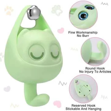 TalkiiWith Creative Adhesive Coat Hooks,2Pcs Wink Cat Hooks for Hanging Towels, Hats,Coat,Cloth Bags, Belts, Key, for Wall Hanging(Green+Purple)