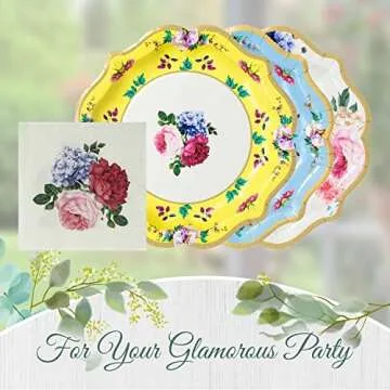 Transform any gathering into a charming and elegant affair with the Talking Tables Truly Scrumptious Vintage Tea Party Set. This delightful collection features exquisitely designed paper plates and scalloped napkins, perfect for hosting a luxurious birthday party or a whimsical garden tea party. Each of the 12 plates measures 8 inches in diameter, beautifully adorned with floral prints and a royal gold trim that elevates the look of your table setting. The set also includes...