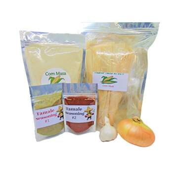 Tamale Kit- Includes 2 Seasoning Packs, 25 Corn Husks, Corn Masa, 1 Onion, 1 Garlic Bulb (Makes 2 Dozen Tamales). Great for Any Occasion. - Country Creek Acres