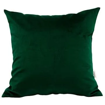 TangDepot Set of 2 Durable Faux Silk Solid Pillow Shams, Square Decorative Pillow Covers, Throw Pillow Covers, Indoor/Outdoor Cushion Covers Pillows Shells - (20"x20" 2 Pieces, Deep Green)