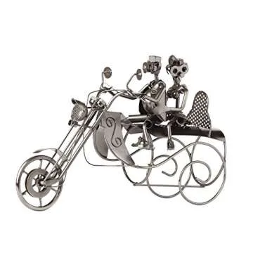Show more Introduce your living space to a touch of elegance and nostalgia with the TANGDIAABBCC Upscale Innovations Couple On A Motorcycle sculpture and vintage wine rack. This stunning piece creatively combines art with functionality, featuring a charming couple riding a motorcycle, elegantly displayed alongside a practical wine rack that measures an ideal 16" X 9" X 4" inches. Effortlessly store your favorite wine bottles while enhancing your decor. Additionally, included in this set is a handheld foil cutter equipped with a razor-sharp blade, designed to smoothly remove foil from wine bottles in just seconds, ensuring you're always ready to serve your favorite vintage with style. To top off this exquisite collection, the vacuum pump wine bottle stopper removes air to preserve your wine's flavor and aroma, making this not just a decorative piece but a complete wine serving solution.