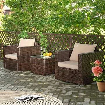 Why You will Love This Product?You will fall in love with the Tangkula Patio Furniture Set not only for its aesthetic appeal but also for the inviting comfort it provides. Picture yourself enjoying your favorite beverage under the clear sky, surrounded by family and friends, all while resting on luxuriously padded cushions. Its combination of functionality and style creates the perfect ambiance, making every outdoor occasion memorable and enjoyable.