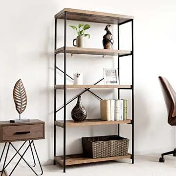 Show more The 5-Tier Multipurpose Shelf is an exceptional piece designed for those who appreciate both functionality and elegance in their home decor. Crafted with a unique blend of high-quality wood and sturdy iron tubing, this shelf not only offers durability but also adds a touch of rustic charm to any space. With its classical style, it serves multiple purposes that cater to your storage needs. Use it as a bookshelf to house your favorite novels, or convert it into a display stand for trophies and awards that celebrate your achievements.