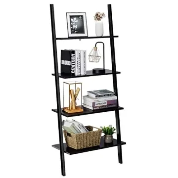 Show moreIntroducing the Tangkula Industrial 4-Tier Ladder Shelf — a stunning blend of modern design and practical functionality designed to maximize your living space. With its elegant black finish and sleek metal frame, this leaning bookshelf not only serves practical storage needs but also elevates the aesthetic of your home or office. Measuring 25” x 14” x 60”, it features four differently sized shelves, making it adaptable for various uses: perfect for displaying cherished photos, vibrant plants, or essential books while ensuring everything has its place. The innovative design allows it to occupy minimal floor space while taking full advantage of vertical space, making it an ideal choice for urban dwellers or anyone looking to declutter their environment.