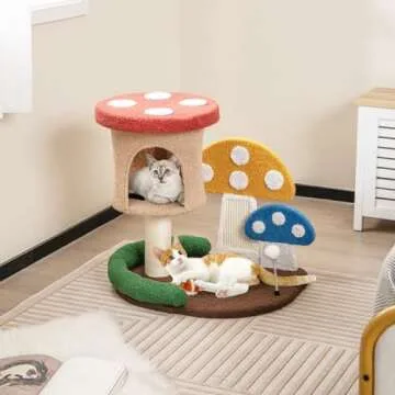 Tangkula Mushroom Cat Tree, Cute Cat Tower with Full-Wrapped Sisal Post, Scratching Board & Spring Ball, Cat Condo, Flower Cat Tree Tower for Indoor Cats Large Adult (23.5 Inch)
