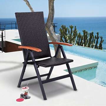 Tangkula Rattan Folding Chair, Adjustable Indoor Outdoor Camping Garden Pool Wicker Reclining Chair (2)