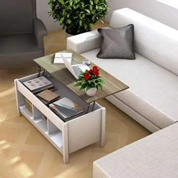 Tangkula Wood Lift Top Coffee Table, Modern Coffee Table w/Hidden Compartment and Open Storage Shelf for Living Room Office Reception Room (White)