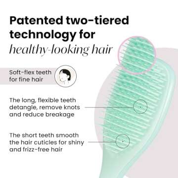 The patented two-tiered teeth technology gently detangles hair and reduces breakage by smoothing strands.