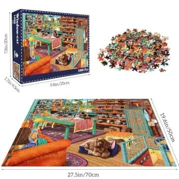 TangMosaic Puzzle for Adults 1000 Pieces, Jigsaw Puzzle Challenging Night Game, Windowsill Cat Puzzles No Dust, Home Decoration, Family Puzzle for Adults, Party Toy for Men Women Parents Kids