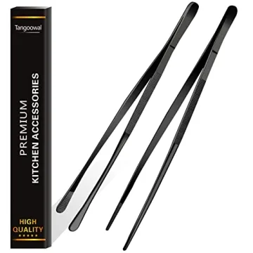 Tangoowal 2-Pack 12-Inch Stainless Steel Cooking Tweezers - Precision & Durability