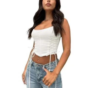 Tankaneo Women Corset tops Lace Up Boned Bodyshaper Bustier Zip Back Cropped Going Out Tops