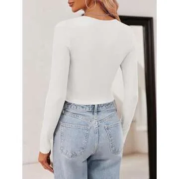 Tankaneo Women Crop Tops Long Sleeve Ribbed Slim Fit Workout Cropped Tee Y2K Short T-Shirts White