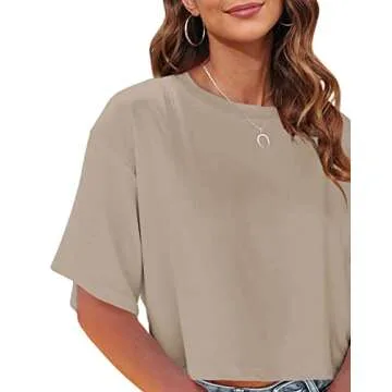 Tankaneo Women Half Sleeve Cropped T-Shirts Drop Shoulder Round Neck Crop Tops Casual Summer Solid Color Basic Tees