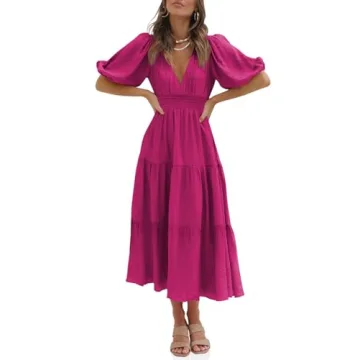 The unique design features a tiered silhouette, allowing it to flow gracefully with every step. With a subtle touch of modern flair, the dress includes an elastic waistband that not only enhances comfort but also shapes the figure beautifully. Pair it effortlessly with your favorite heels or sandals for a chic, up-to-date look.