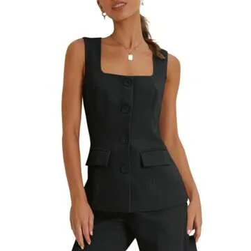 Tankaneo Women's Single Breasted Vests Square Neck Sleeveless Slim Fitted Work Office Waistcoats