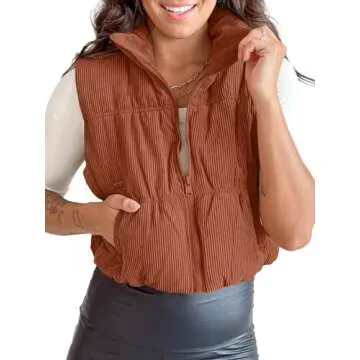 Tankaneo Womens Cropped Puffer Vest Corduroy Lightweight Sleeveless Padded Coat Zip Up Warm Outerwear