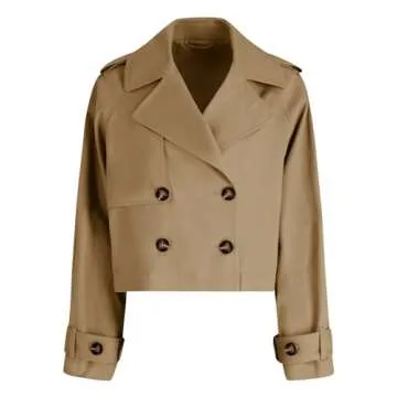 Stylish Tankaneo Womens Cropped Trench Coat – Double Breasted Outwear