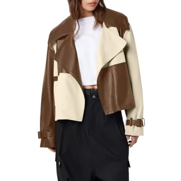 Show moreDiscover the ultimate blend of style and comfort with the Tankaneo Women's Leather Cropped Jacket. This fabulous coat redefines casual elegance, expertly crafted from a combination of 50% Polyester and 50% Synthetic leather. Designed for the modern woman, this lightweight jacket is as functional as it is fashionable, making it a must-have addition to your wardrobe. The oversized lapel and chic color-blocking design elevate your outfit, while long sleeve cuff buckles and functional side pockets add practicality, allowing you to carry essentials effortlessly.