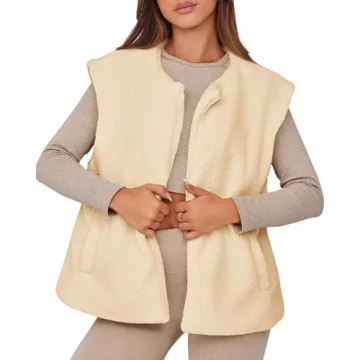 Tankaneo Womens Oversized Fuzzy Fleece Vest Outwear Cap Sleeve Casual Fall Sherpa Jackets