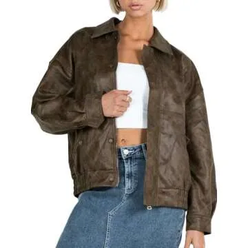 Show more Discover the perfect blend of style and comfort with the Tankaneo Women’s Oversized Leather Jacket. This trendy zip-up bomber coat is crafted from high-quality materials, featuring a durable combination of 50% synthetic leather and 50% polyester on the outer layer, complemented by a luxurious 100% polyester lining. Designed with a professional cut, this jacket exudes an effortless cool vibe and is a versatile addition to your wardrobe that’s perfect for layering in spring, autumn, and winter.