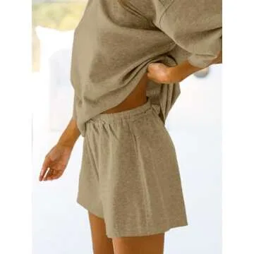Tankaneo Womens Pajama Sets 3/4 Sleeve Oversized Tops and Elastic Waist Shorts Lounge Sets Loungewear