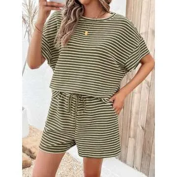 Show more Experience the ultimate blend of style and comfort with the Tankaneo Women's Pajamas 2 Piece Lounge Sets. Crafted from a meticulously selected soft, textured material, this matching set is designed to be skin-friendly and breathable, ensuring you stay at ease all day long. Whether you're indulging in a lazy weekend or enjoying a cozy evening at home, this lounge set provides luxurious comfort that feels delightful against your skin. With its chic army green stripes, you're not just dressing for comfort; you're making a fashionable statement wherever you go!