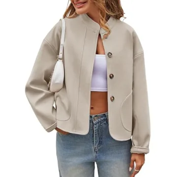 Show moreIntroducing the Tankaneo Womens Short Pea Coat, the perfect blend of style, comfort, and functionality! This chic oversized long sleeve bomber jacket, expertly crafted from high-quality fabric, not only ensures you stay warm through the colder seasons, but also elevates your wardrobe with its luxurious feel and modern design. Make a bold statement this fall with a jacket that fits true to size, providing a slightly relaxed silhouette that flatters a variety of body shapes. The garment showcases a stylish button-down closure for easy wear, while its thoughtfully designed pockets allow you to carry your essentials without sacrificing style.