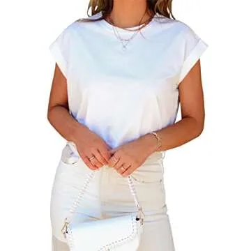Tankaneo Womens Short Sleeve Cropped T-Shirts Summer Rolled Dolman Sleeve Crop Tops Casual Round Neck Solid Short Basic Tees