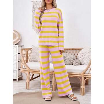 Tankaneo Womens Striped Sweater Sets 2 Piece Lounge Sets Oversized Long Sleeve Tops and Pants Matching Set Tracksuit