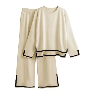 Show moreIntroducing the Tanming Women's 2 Piece Outfits, a perfect blend of style and comfort designed specifically for the modern woman. This two-piece knit sweater set includes a long sleeve crew neck top featuring a chic drop shoulder design, complemented by a pair of wide leg palazzo trousers. The pants are high-waisted with an elastic waistband, providing you with a relaxed, flowy silhouette that not only looks fabulous but feels amazing against your skin. Whether you're dressing it up for a lunch date or keeping it casual for errand runs, this outfit adapts effortlessly to any occasion.