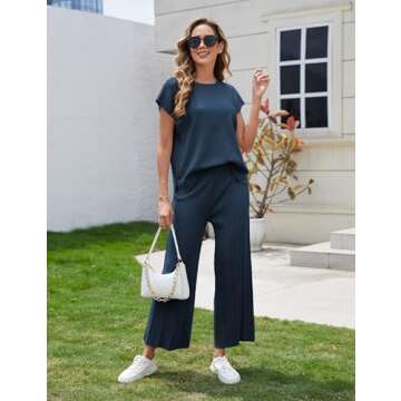 Show moreIntroducing the Tanming Women's 2 Piece Outfits Sweater Set, a luxurious and versatile addition to your wardrobe that combines utmost comfort with stylish sophistication. Crafted with a soft knit fabric, this delightful ensemble features a chic pullover top that boasts a classic crewneck design paired with elegant cap short sleeves. The standout high-low hemline not only adds a touch of flair but also ensures a relaxed fit that accentuates your silhouette beautifully. Complementing this stunning top are the high-waisted wide-leg pants, designed with a rib-knitted pattern that enhances their richness and texture. Perfectly tailored to hit at ankle length, these trousers elevate any outfit with their elegant pleats that create a sophisticated vibe, making you stand out in any setting.