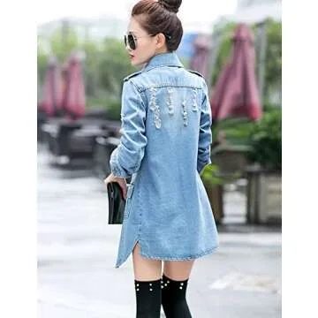 Tanming Women's Casual Lapel Slim Long Sleeve Denim Outercoat Jacket Windbreaker (Medium, Blue)