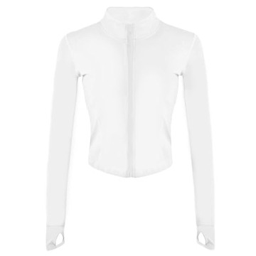 Tanming Women's Full Zip Seamless Workout Jacket Running Yoga Slim Fit Track Jacket (White-L)