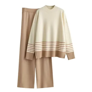 Tanming Women's Lounge Sets: Cozy 2 Piece Knitted Pullover & Wide Leg Pants