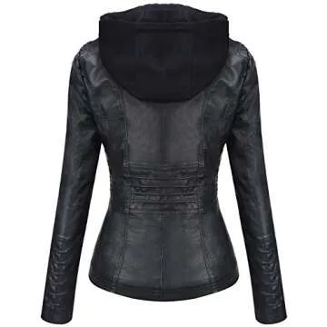 Tanming Women's Womens Hooded Faux leather Jackets (Small, Black)