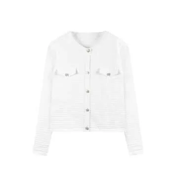 Tanou Women's 2024 Fall Fashion Casual Long Sleeve Cardigan Sweaters Button Up Knit Blazers Lady Tweed Jackets White