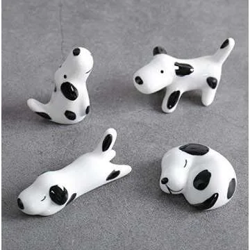 TanQiang 4 Pcs Set Cute Spotted Dog Ceramic Ware Chopsticks Stand Rest Rack Knife Fork Holder