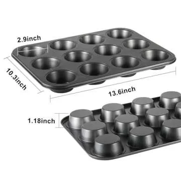 Measuring at 13.6 x 10.3 x 1.18 inches, it features individual cavity dimensions of 2.9 x 1.18 inches, making it ideal for crafting 12 perfect-sized muffins or cupcakes in one batch. The unique design facilitates quick and even heat conduction, ensuring that each muffin rises beautifully without any over-baking or inconsistencies.