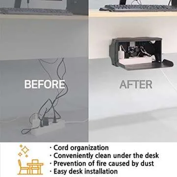 TAP-UP Cable Box, Desk Mounted Cable Management Box, Cord Organizer - Easy to Install Without Drilling Any Holes to Your Desk (Grey)