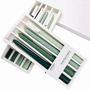 Elevate your home decor with the exquisite Taper Candles 10'' Colored Candle Sticks Set of 8. Crafted from natural soy wax, these stunning candles are colored all the way through, providing vibrant green hues that enhance any setting. Each candle emits a delightful amber & sandalwood scent, striking a balance that’s both pleasant and not overpowering, making them perfect for unwinding evenings or special gatherings. The 10-inch tapered candles are designed...