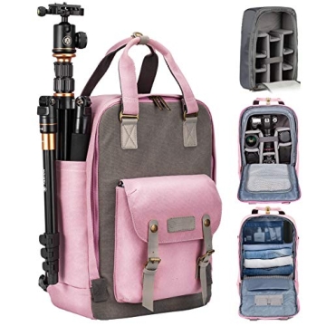 Show more Introducing the TARION Camera Bag Backpack designed specifically for women photographers! This 2-in-1 chic pink backpack is both a glamorous everyday bag and a functional camera bag, featuring a padded removable insert that assures safe storage for all your camera gear. Transition from carrying your DSLR to a stylish daypack in seconds by simply detaching the insert. Its lightweight, yet durable construction ensures that every adventure—whether in the urban jungle or at a scenic photoshoot—becomes a convenient and enjoyable experience.