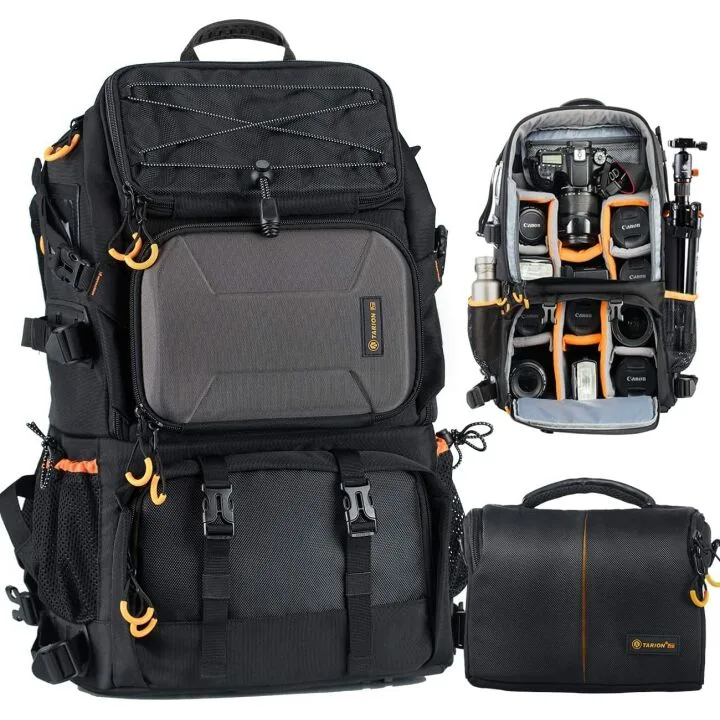 The TARION Pro PB-01 Camera Bag is an exceptional choice for photographers who need a reliable, spacious, and durable backpack. This extra-large bag features dual compartments that can easily hold multiple camera bodies and lenses. The top compartment can accommodate one camera and up to five lenses, while the lower compartment can hold one camera and four lenses or six prime lenses. Additionally, an accessory shoulder bag offers the flexibility to carry one camera and two lenses, making this an incredibly...