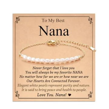 Show moreSurprise your beloved Nana with the enchanting Tarsus Nana Bracelet, a heartfelt gift designed to capture the eternal bond between a grandmother and granddaughter. Crafted with high-quality white artificial pearls, this elegant bracelet not only complements any outfit but also symbolizes health and happiness. Every time your Nana adorns this exquisite piece, she will feel cherished and connected to you, creating beautiful memories that last a lifetime. The bracelet comes complete with a meaningful gift card expressing your love and gratitude, ensuring that your sentiment is just as precious as the jewelry itself.