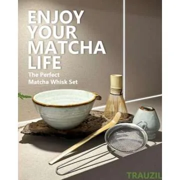 Introducing the Taruzil Matcha Whisk Set—an exquisite, all-in-one kit designed to elevate your matcha experience! This impressive set includes a beautifully crafted bamboo whisk (chasen), a finely designed matcha bowl with a spout, a matcha sifter, a scoop, and a chic whisk holder. Each item is meticulously handmade and ensures that every cup of matcha is infused with care and attention to detail. Perfectly combining functionality and aesthetic appeal, this matcha set serves not only as...