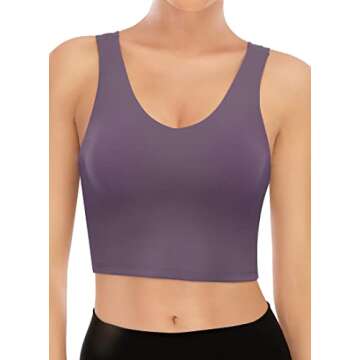 TASADA V-Neck Sports Bras for Women - Wirefree Padded Yoga Bra Running Workout Aesthetic Crop Tank Tops Purple